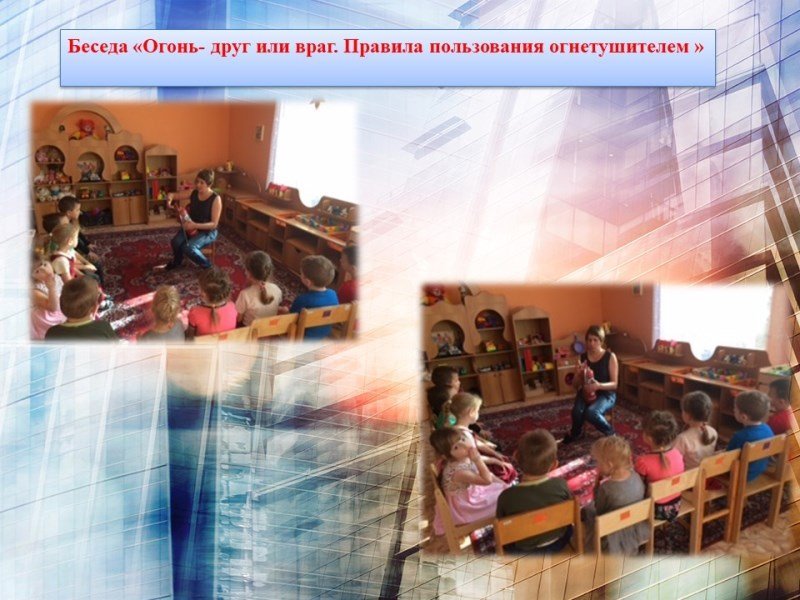 1. | Беседа «Огонь - друг или враг. Правила пользования огнетушителем » | Воспитатель |