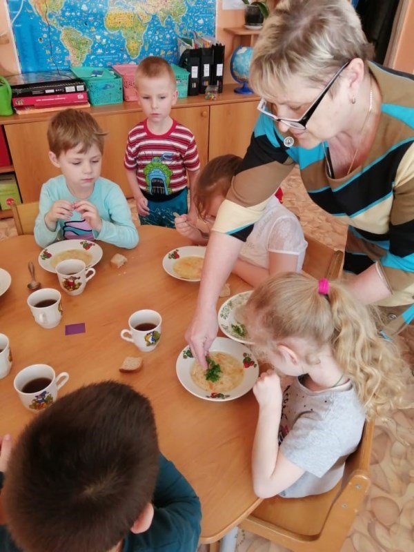 За всеми растениями проводились регулярные наблюдения. Ухаживая за растениями, дети наблюдали за тем, как всходят семена и прорастают луковицы, пикировали, записывали наблюдения. Выращенные своими руками- петрушка, лук, кресс- салат, попадали в тарелочки с супом на обед. И красиво и вкусно, и полезно!