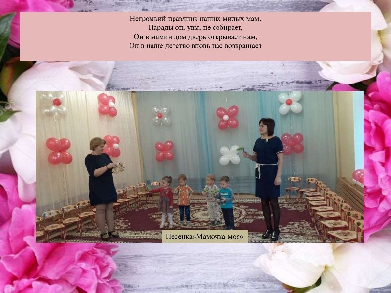 Вашему вниманию представлены фотоматериалы утренников, посвященных Дню Матери.