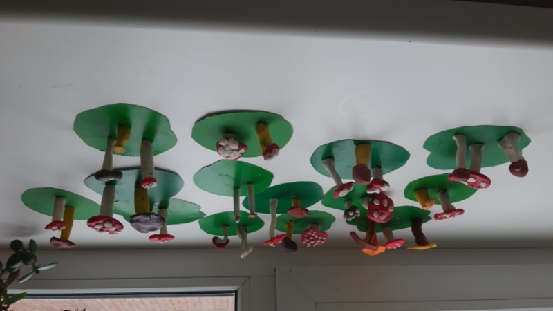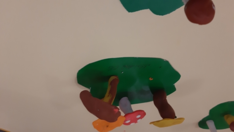 В разновозрастной группе «Пчелки» прошла образовательная деятельность по художественно - эстетическому развитию – лепка «Грибы в осеннем лесу». Ребята учились раскатывать из пластилина колбаски толстые и тонкие, закрепили умение лепить знакомые предметы, используя усвоенные ранее приемы (раскатывание пластилина прямыми и круговыми движениями, сплющивание ладонями, прощипывание. Воспитатель Луканина Людмила Григорьевна обращала внимание на аккуратность при работе с пластилином, желание помочь друг другу. Выполненные работы ребята разместили на индивидуальных полянках из зеленого картона.