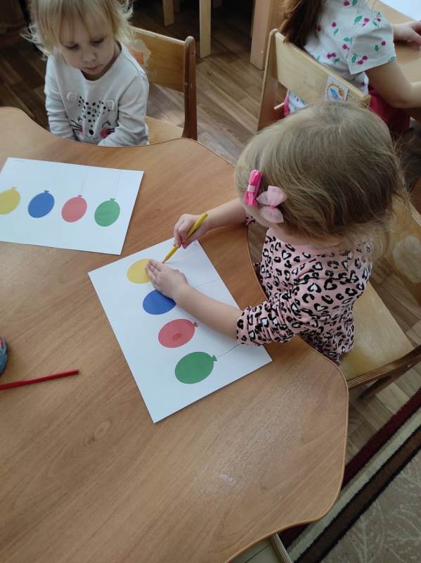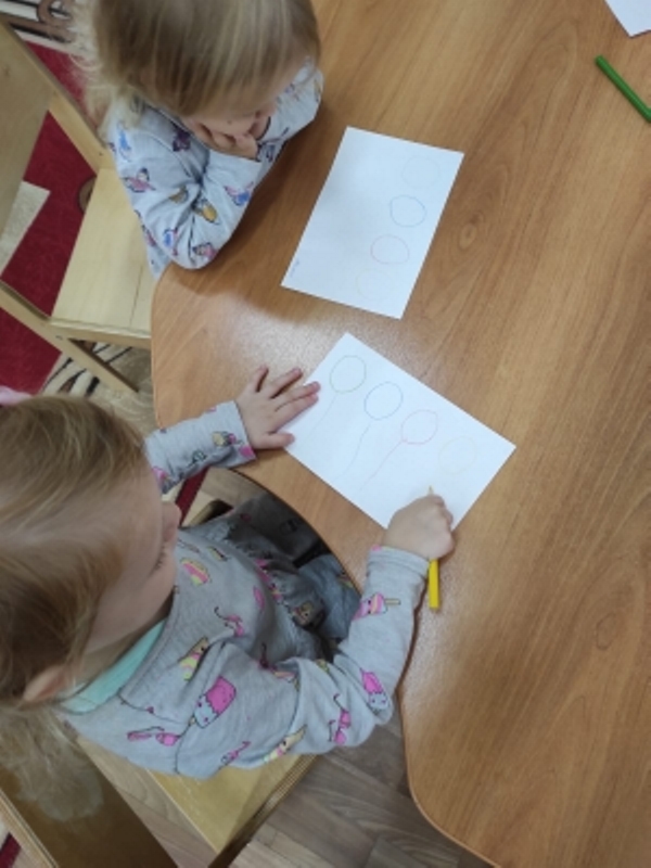 В разновозрастной группе «Солнышко» прошла образовательная деятельность по художественно - эстетическому развитию. «Разноцветные шарики». Воспитатель Круглова Виктория Валерьевна провела ООД по художественно –эстетическому развитию - рисование «Завяжи шарикам разноцветные ниточки». Малыши учились правильно держать карандаш, проворисовать линии сверху вниз, вести линии неотрывно, слитно, закрепляли знание основных цветов.
