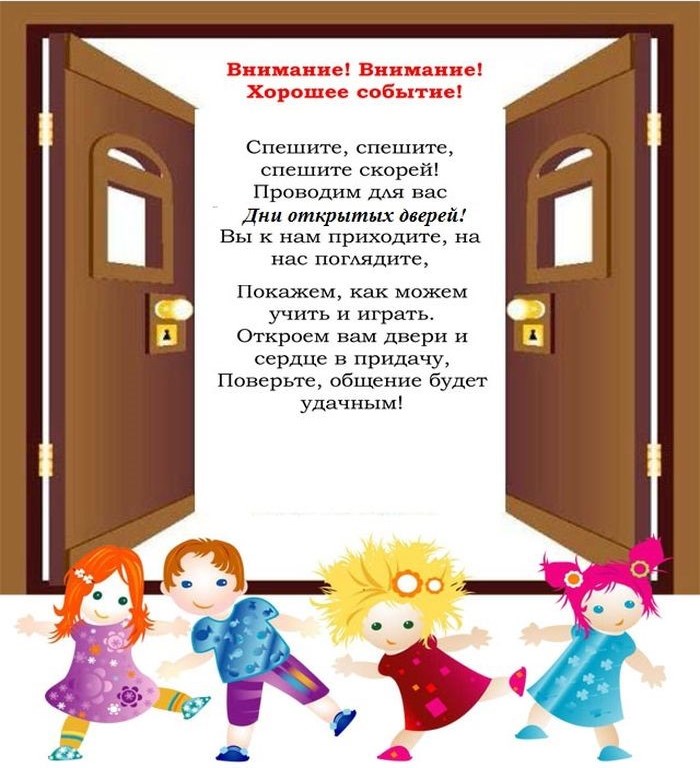 День открытых дверей в детском саду – это форма работы, которая позволяет родителям и общественности познакомиться поближе с дошкольным образовательным учреждением, его традициями, правилами, узнать о том, «чем живут» дети в детском саду.