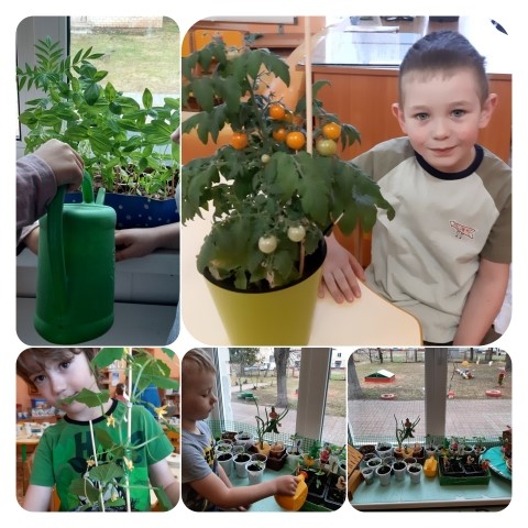Посадили лук. Малыши с большой радостью создавали огород. Далее мы наблюдали за происходящим и вот теперь мы дождались появление всходов и даже урожай помидор.