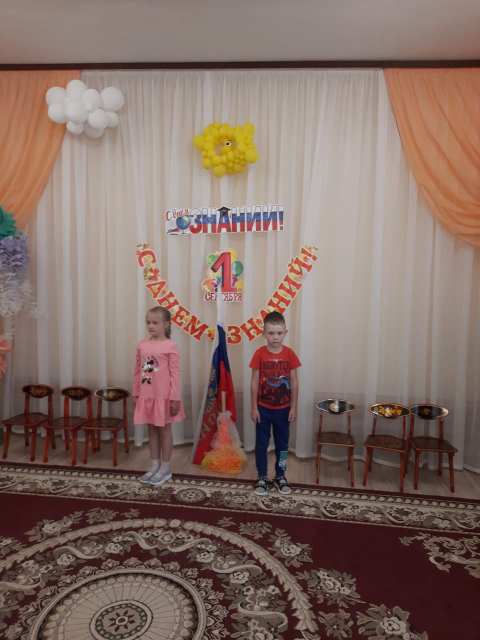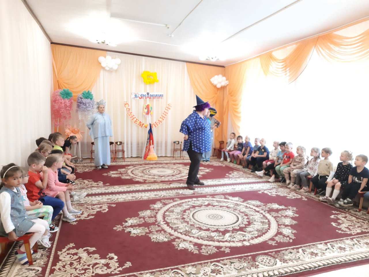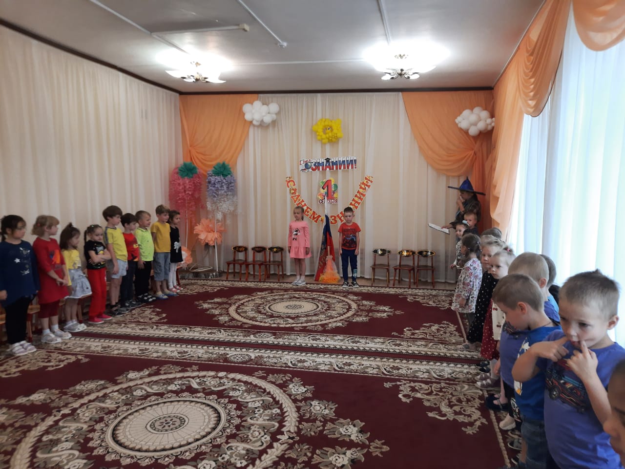 По традиции 1 сентября в нашем детском саду прошло праздничное мероприятие. К ребятам пришли Незнайка и Снегурочка, которая перепутала Новый год с новым учебным годом. Дети с интересом наблюдали: кто же победит в их интеллектуальной игре? Незнайка поздравил детей и взрослых с Днём знаний, загадал загадки из волшебного портфеля, послушал детские песни про школу, про детский сад, поиграла с ребятами в игры "Выбери предметы для школы и детского сада", "Сложи слоги". Снегурочка предоставила детям возможность посоревноваться с ней в ловкости, смелости, смекалке, пригласила на танец "Карадашей" и "Хоровод с любимыми игрушками". В честь начала учебного года дошкольники внести Государственный флаг. Праздник удался на славу