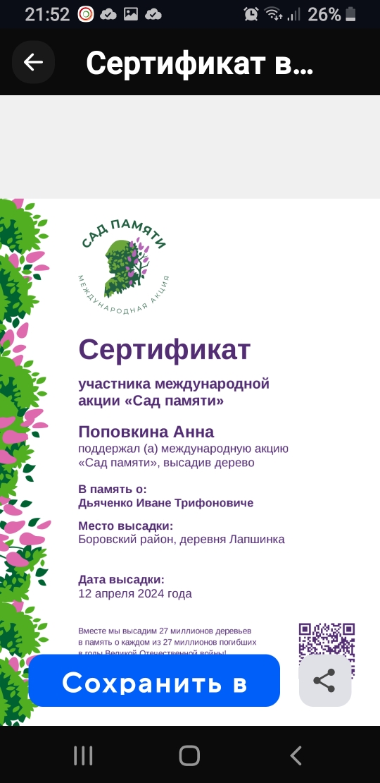 Наш детский сад принимает участие во Всероссийской акции "Сад памяти".